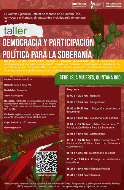 30 de marzo 2026.- En las instalaciones del Instituto Nacional de Formación Política (INFP), en la Ciudad de México, se llevó a cabo los días 28 y 29 de marzo el curso “ Participación democrática y sistema político en México: análisis comparado y retos contemporáneos ” . Este curso tuvo como objetivo analizar el sistema político mexicano en perspectiva comparada, identificando sus fundamentos, funcionamiento y los retos contemporáneos en materia de representación y particip